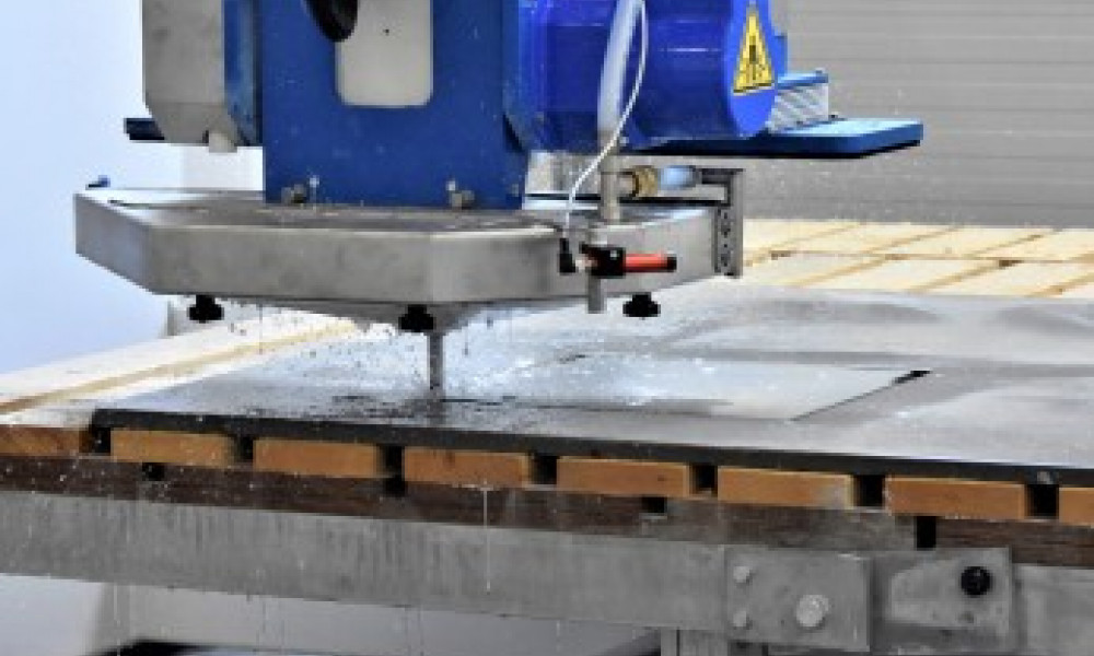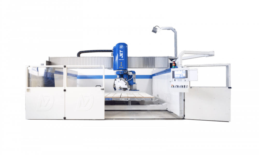 Máquina para corte de chapas em mármore, granito e aglomerados com espessura até 200 mm com disco de 625 mm de diâmetro.
