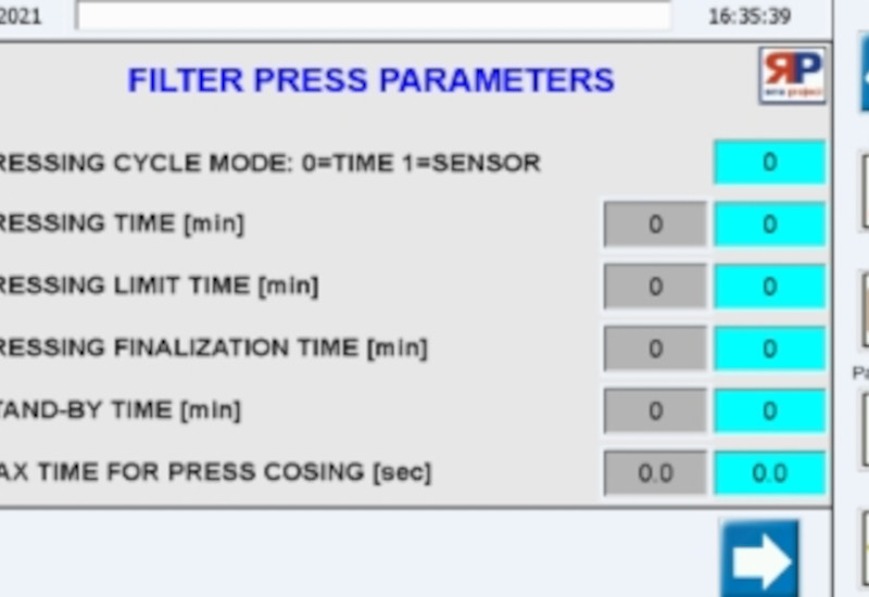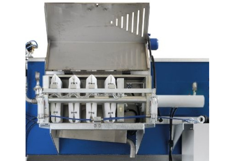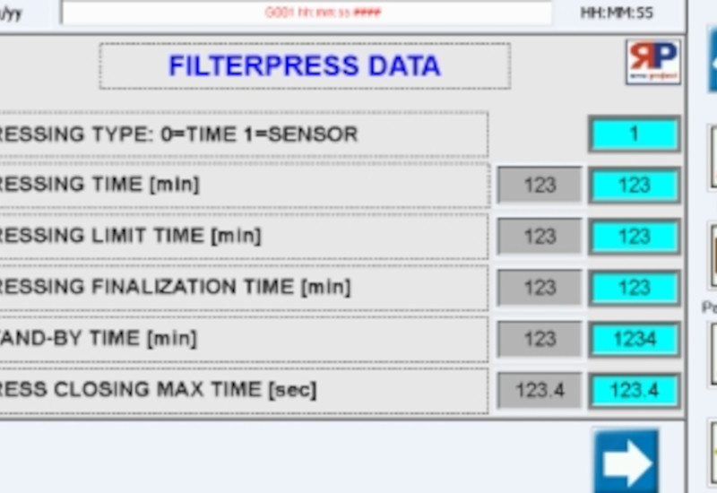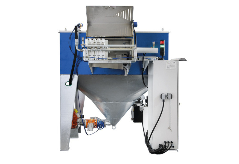 Descarga de lodo automática e sistema de alimentação do filtro de pressão.