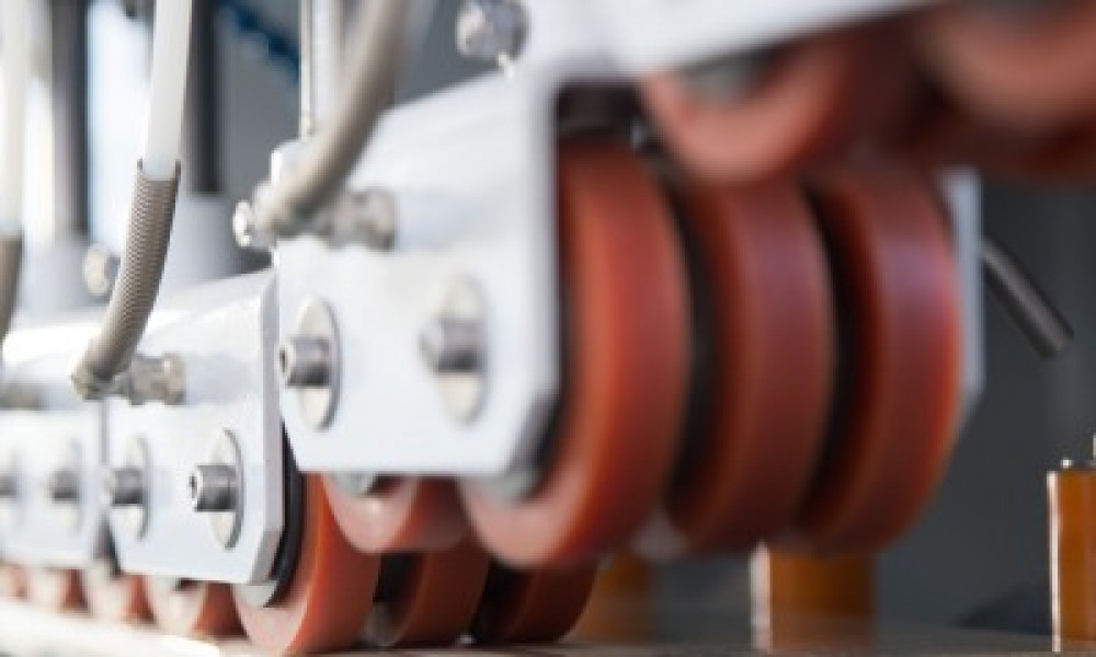 Possibilidade de polir as arestas sem a barra de apoio, devido ao sistema de deslizamento especial do tapete transportador. Bloqueando a chapa utilizando pistons pneumáticos.