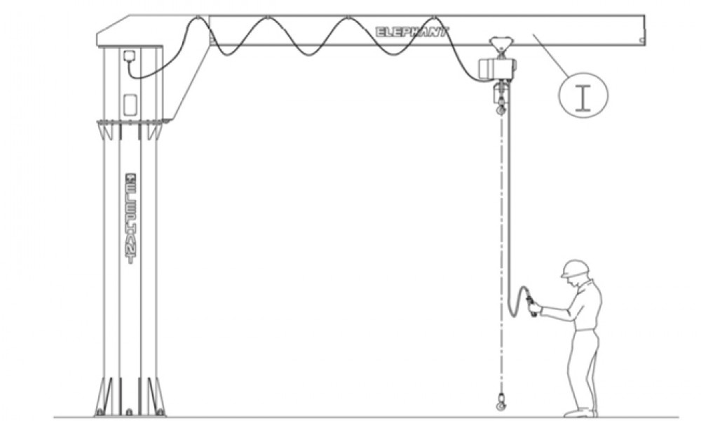 Fornecido com: braço rotativo com sistema de travagem automática, sistema eléctrico com cabo liso e suporte de cabo em plástico, pintura anticorrosão e duas de mãos de esmalte.